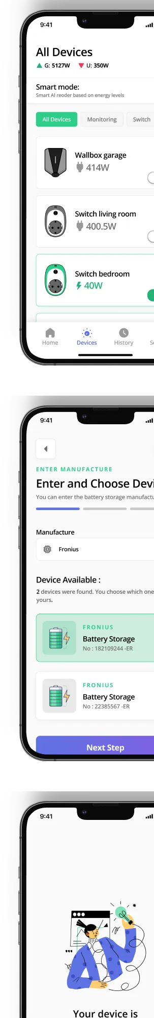 The key to simplifying energy management is powerful UX and UI, which do more than just display data - they transform it into clear, actionable insights. The interface we designed acts like a personal assistant, guiding users through their energy usage step-by-step, suggesting intelligent automations, and connecting seamlessly with existing systems. No confusion, no extra clicks - just intuitive, efficient energy control.