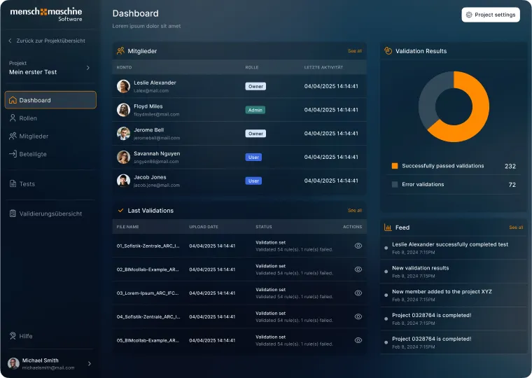 We designed an intuitive platform that bridges these gaps by providing a shared, well-organized workspace. The central dashboard establishes a clear structure, enabling our client to manage projects more efficiently and monitor progress transparently. By managing permissions and allocating responsibilities, stakeholders gain a clear understanding of their roles and tasks - without any misunderstandings. With clear visualizations & well-thought-out UX design, complex data becomes easy to understand, allowing teams to start working productively from the very first moment.