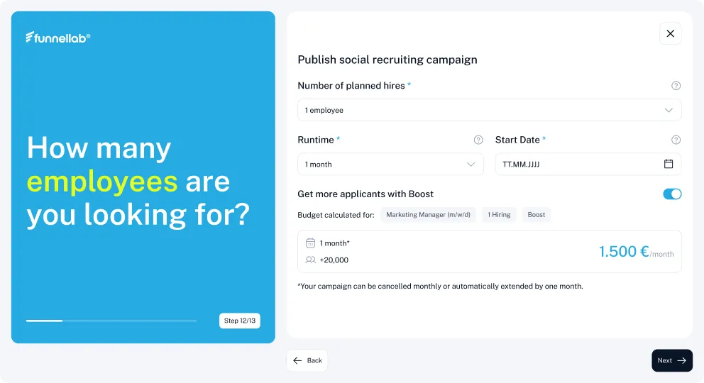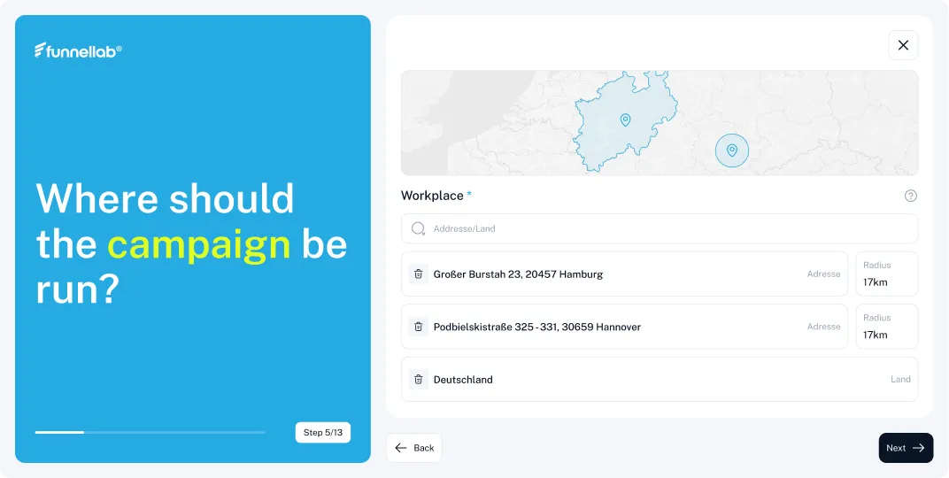 Von Anfang an war klar: Effizienz steht an erster Stelle. Mit funnellab haben wir eine Plattform entwickelt, die physische Bewerbungen und das damit verbundene Chaos eliminiert. Stattdessen haben wir den Recruiting-Prozess neu gedacht – angefangen bei der Ansprache der perfekten Kandidaten. Durch smarte Social-Media-Kampagnen erreichen unsere Kunden heute viel mehr Bewerber als je zuvor. Und die Flut an Bewerbungen? Die filtert unser System automatisch raus, sodass Recruiter nur die wirklich passenden Kandidaten angezeigt bekommen. Dabei behalten sie dank Bewerber-Management immer den vollen Überblick und können den Prozess ganz einfach steuern. Mehr Klarheit, weniger Stress – so läuft Recruiting heute!