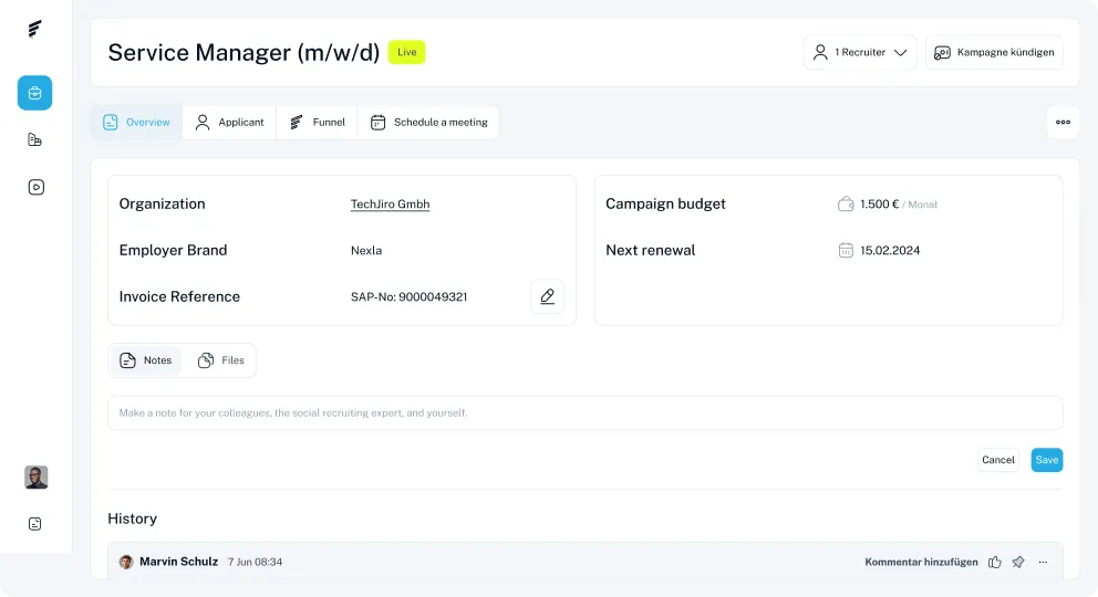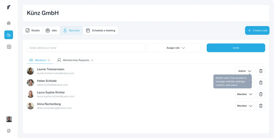 Recruiting ist ein mühsamer und chaotischer Prozess: endlose Stapel von Bewerbungen, unübersichtliche Excel-Tabellen und viel zu viel Papierkram. Wir sahen die Gelegenheit, das zu ändern und stattdessen alle wichtigen Schritte im Recruiting auf einer einzigen digitalen Plattform zu vereinen. Der gesamte Prozess musste digitalisiert werden, um Personalern eine klare und umfassende Übersicht über alle geeigneten Kandidaten und deren Bewerbungsstatus in den einzelnen Phasen zu bieten – und das alles bei gleichzeitig schlankem und übersichtlichem Design.